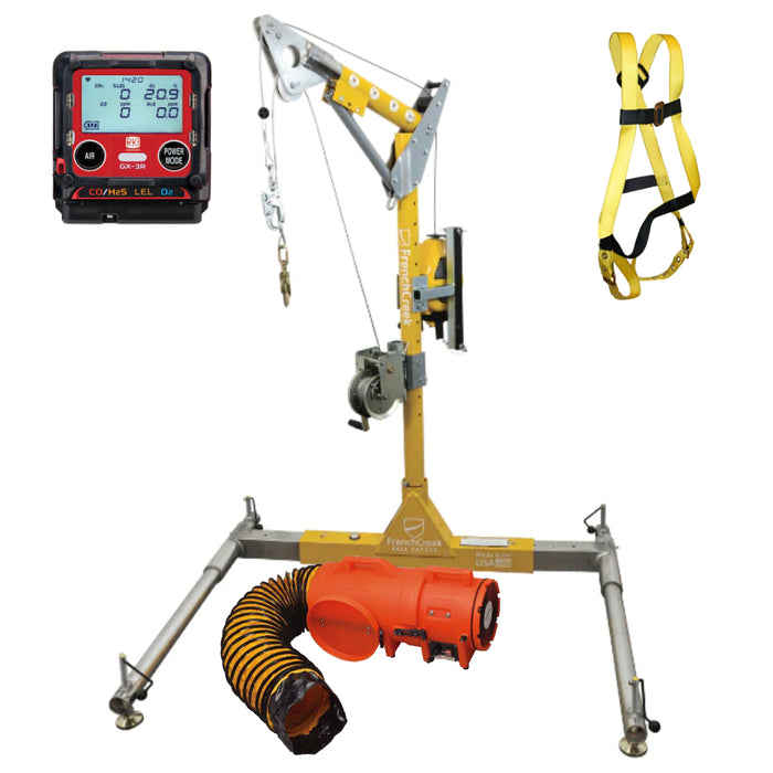 All-In-One Complete Portable Davit Confined Space Rescue Kit with GX-3R Monitor and Blower