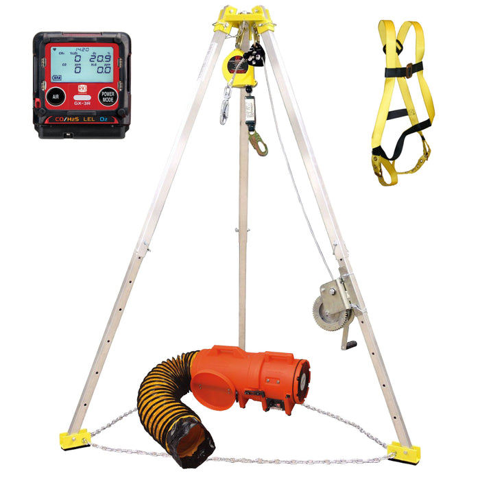 This complete confined space rescue kit is now the most popular choice for most confined space entry jobs. It is our best selling confined space kit. The reason is simple--it features the Japanese made GX-3R gas monitor. The reliability of it's sensors is an industry best. Just ask our technician. And on top of that, the GX-3R comes with a 3 year warranty.