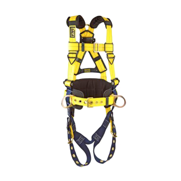 The DBI Sala 1101654 construction harness features a body belt and pad with side D-rings and shoulder pads. This harness is ideal for general construction applications where fall protection and positioning is needed.