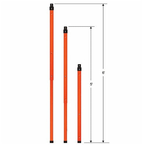 Our new telescopic extension handles are tough and durable, made of the same heavy duty ABS plastic as our standard handles. Telescoping from the storage configuration to 5' and 6' in length, these handles provide display heights of 6' and 7' from the bottom of the sign to the ground (paddles have 1' handle attached). Plastic tube and socket connectors with locking spring buttons make deployment and take-down a snap. Handles feature flat surfaces front and back which aid the user in determining the sign's orientation, minimizing the amount of time their attention is away from traffic. A thick rounded bottom cap protects the handle from wear while making the unit easy to rotate.