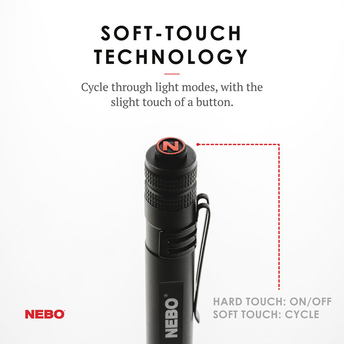 The NEBO INSPECTOR flashlight produces an amazing output of 180 lumens. It comes standard with a super-bright bulb and a removable steel pocket clip.