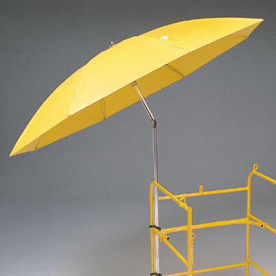 The Allegro 9403-00 confined space umbrella features a mammoth 84" diameter. This thing will thrown massive amounts of shade or protect you and equipment from the rain. It is made of heavy duty vinyl and comes with a two-part metal pole. The pole tilts so you can follow the sun. You can strap it to a manhole guard or push it into the ground. It does collapse down to 4' x 6" diameter for easy storage.