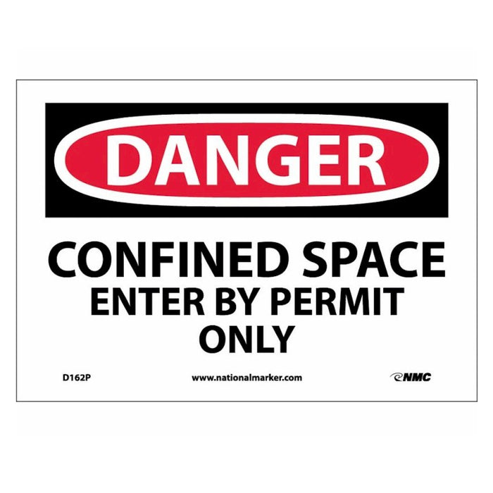 The D162 Danger Confined Space Enter By Permit Only sign complies with OSHA 29 CFR 1910.145. It's available in 2 sizes - 7"x10" and 10"x14". It's also available in 3 different materials - Sticker, Rigid Plastic, and Aluminum.