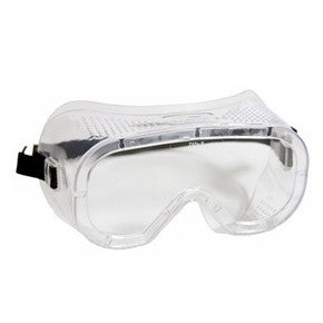 Radnor ventilated safety goggle has soft vinyl frame that fits snug and can be worn for extended periods of time. The transparent frame allows vision in all directions and has hooded vents that prevent fogging and aid ventilation while the tough polycarbonate lens offers protection against dust and flying objects.