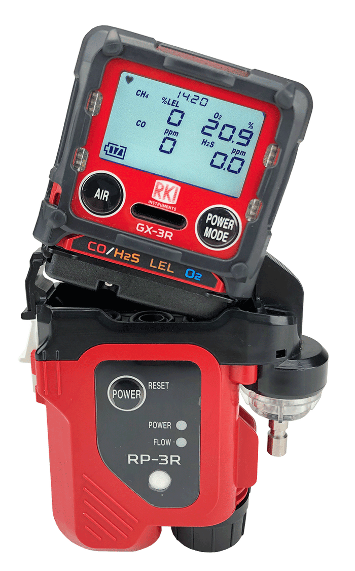 This RKI RP-3R sampling pump is designed to exclusively fit the GX-3R gas monitor. If you are tired of lowering your meter down on a rope to get a remote sample of a confined space, then this pump set up is for you. This version comes standard with a 10' hose, 10" probe, a tapered nozzle. It even includes 1 "AA" alkaline battery and the built-in dust and hydrophobic filters.