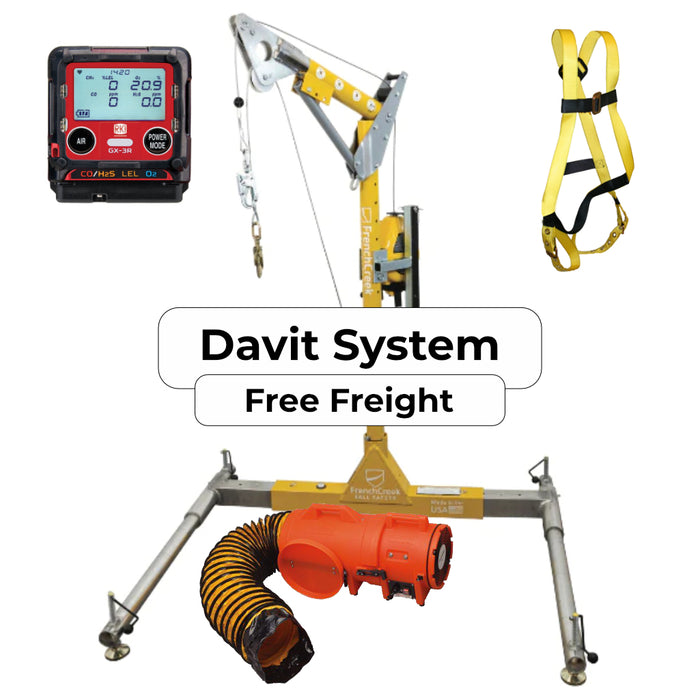 Finally, we have an all-in-one confined space kit featuring a portable davit system. This system is exactly like our best-selling all-in-one confined space kit, except it includes the PD-CSKit2 portable davit system instead of the M-CSKit-25 tripod system. And it ships free!