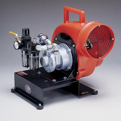 The Allegro 9508 air-driven confined space blower is made for applications where an air compressor is readily available. It can also be used in hazardous environments. It requires 30 cfm at 40 psi to run properly. It uses an aluminum fan for explosion-proof requirements. For durability it comes with a steel base. For aid in transport, it has handles. It comes with a 2-stage filter, regulator, and lubricator. These require regular maintenance.