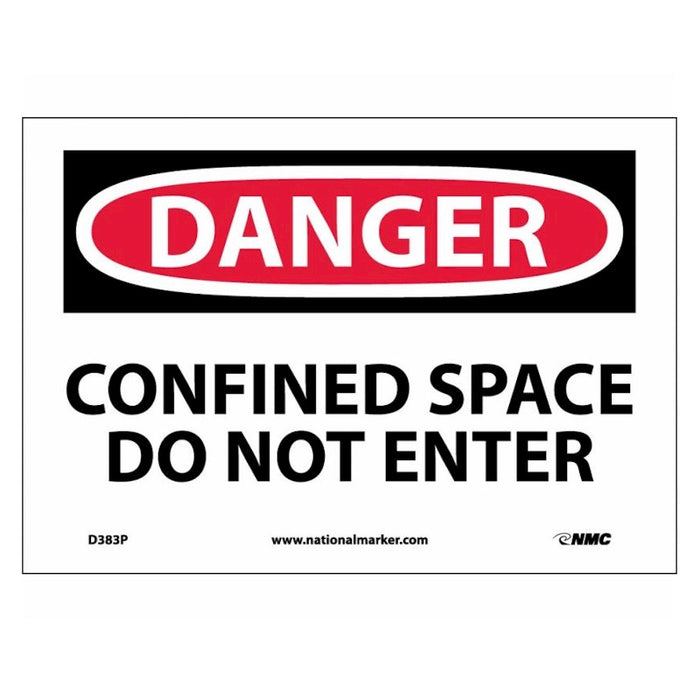 The D383 Danger Confined Space Do Not Enter sign complies with OSHA 29 CFR 1910.145. It's available in 2 sizes - 7"x10" and 10"x14". It's also available in 3 different materials - Sticker, Rigid Plastic, and Aluminum.