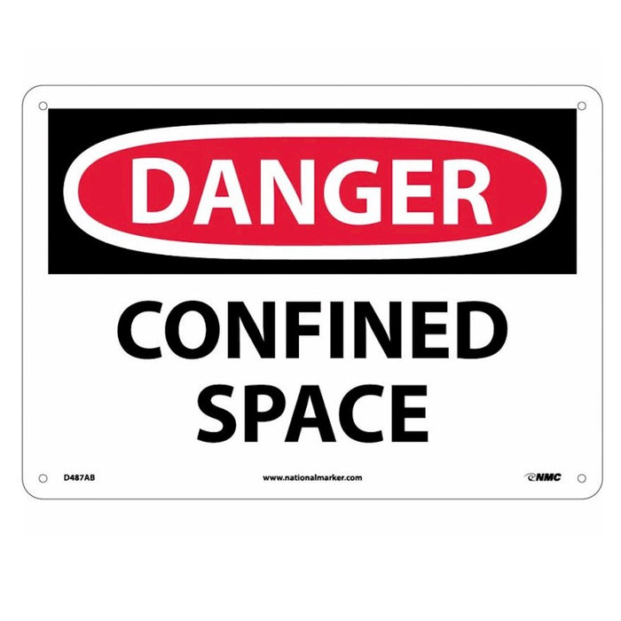 The D487 Danger Confined Space sign complies with OSHA 29 CFR 1910.145. It's available in 10"x14". It's also available in 3 different materials - Sticker, Rigid Plastic, and Aluminum.