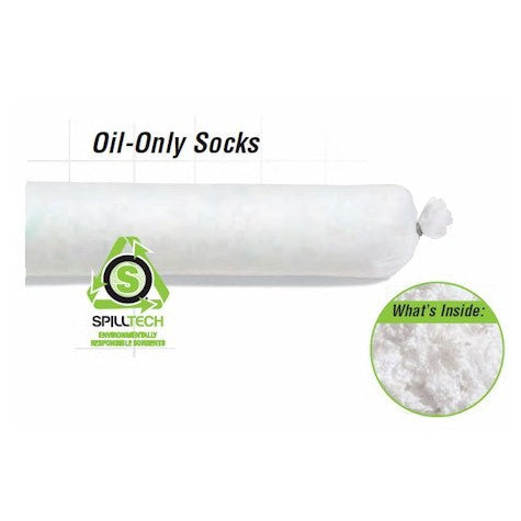 For oil-only cleanup, choose these Socks. By selectively absorbing oil and not water, these 100% polypropylene-filled Socks absorb more oil and can be left on the job longer.